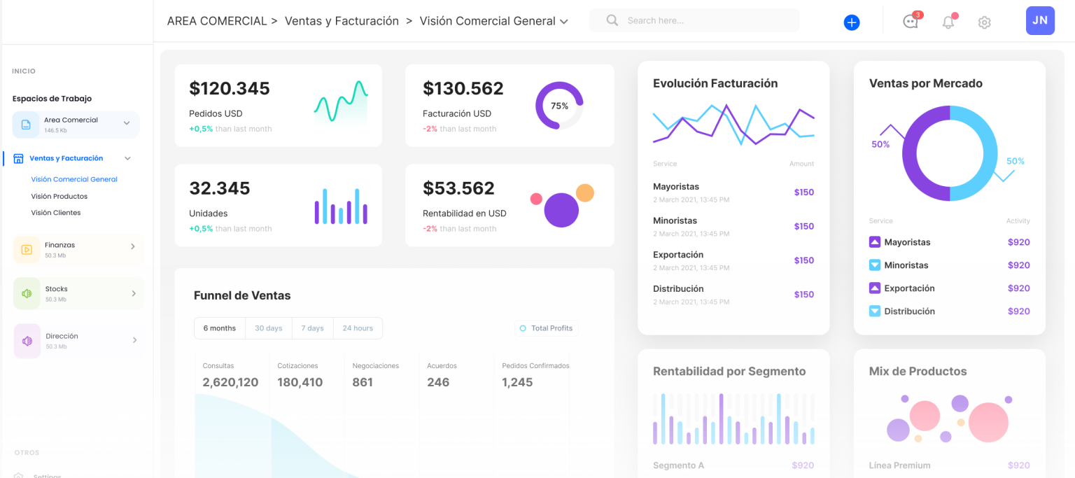 Con indicadores clave, paneles dinámicos y flujos de datos automatizados, obtenés una visión completa y accionable de tus operaciones.